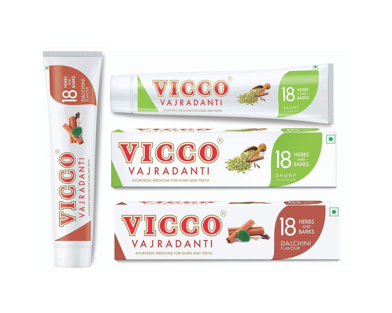 Vicco Combo Pack of 4-2 of Vicco Vajradanti Saunf Flavour (160g) and 2 of Vicco Vajradanti Dalchini Flavour (160g) – Fast Shipping to USA & Canada