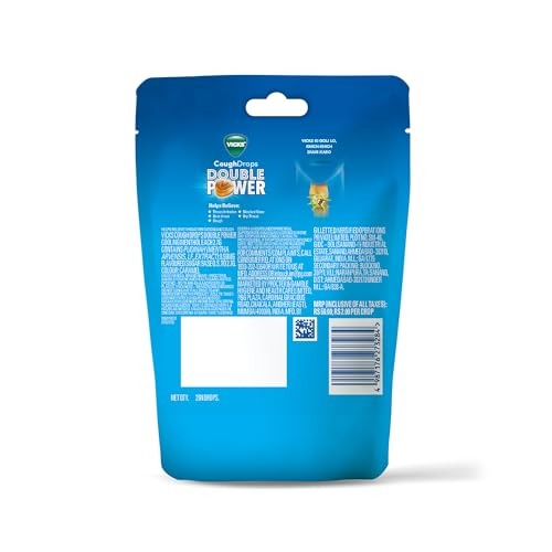 Your reliable partner for Khich Khich relief, VICKS KI GOLI, has transformed into VICKS COUGH DROPS DOUBLE POWER, featuring a potent 2X AYURVEDIC MIX. With a larger size for enhanced relief, the all-new VICKS COUGH DROPS DOUBLE POWER are enriched with Eucalyptus oil, Camphor, and 2X Menthol. This powerful formulation delivers QUICK & LONG-LASTING RELIEF FROM sore throats. These NEW & ENHANCED drops dissolve smoothly in your mouth, creating a soothing layer that alleviates throat discomfort. Experience the refreshing sensation as it alleviates pain and irritation, providing you with the comfort you need to navigate your day with ease and confidence. Vicks Cough Drops Double Power are available in three FLAVORS featuring effective ingredients: WARMING GINGER, COOLING MENTHOL, and SOOTHING HONEY. Pick up a bag today for enduring relief from a sore throat.
