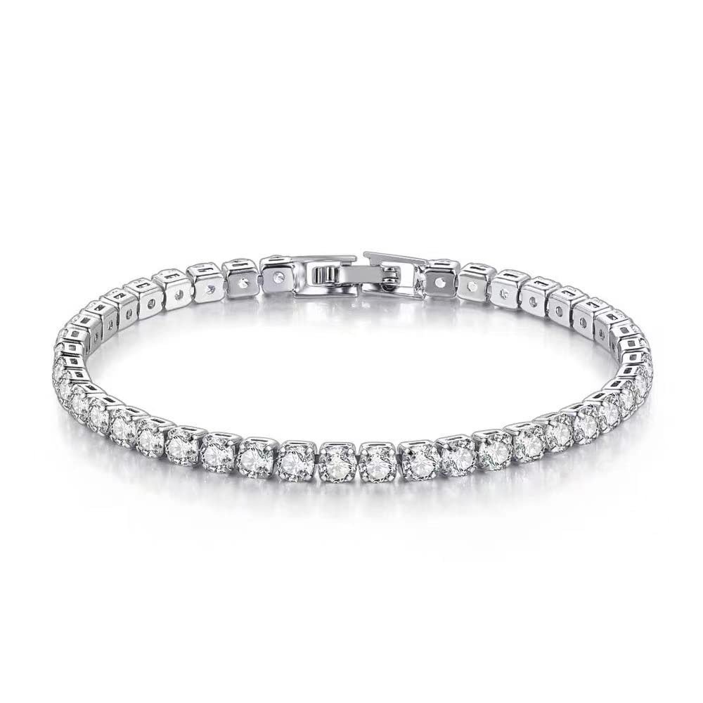 - This dazzling silver-plated bracelet adorned with white crystal stones is an adaptable accessory suitable for women and girls alike. It complements a wide range of outfits effortlessly. Whether you’re preparing for a special occasion or seeking to infuse a bit of elegance into your daily attire, this bracelet is an ideal selection. Combine it with an elegant dress or style it with your go-to jeans and top for a more relaxed appearance.