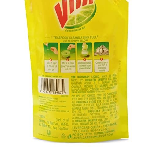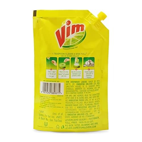 - Vim gel possesses the strength of 100 lemons, making dish cleaning a breeze.