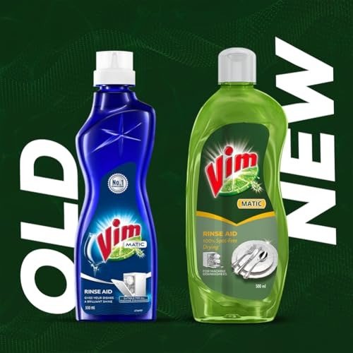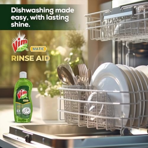 Vim, India?s leading brand in dishwashing, leverages its expertise in machine dishwashers with the introduction of Vim Matic Machine Dishwasher Rinse Aid. This product is meticulously crafted to deliver a brilliant, spotless shine to your dishes. It effectively prevents unsightly white water marks and enhances drying performance, ensuring your utensils gleam. By softening hard water in the dishwasher, it safeguards your dishes from fading. Suitable for all types of dishwashers, it can even be used on delicate and high-end crockery. Simply pour Vim Matic Rinse Aid into the dishwasher?s dispenser until it is full. It will automatically release during the rinse cycle when the dishwasher is activated, and you can easily refill it when it runs out to maintain sparkling clean utensils. For optimal results, pair it with Vim Matic Detergent Powder and Vim Matic Salt. This information is based on a market survey conducted by an independent agency in 2019, which analyzed sales volumes across India. Additionally, consider trying Vim Matic All In One Tablets, which combine the power of detergent powder, rinse aid, and salt into one potent tablet. These tablets are specifically formulated to tackle tough Indian grease, such as oil, masala, burnt milk, and tea. They contain powerful enzymes that penetrate stubborn grease, cleaning your utensils in the dishwasher without the need for pre-soaking, ensuring they emerge sparkling clean regardless of the ingredients or cooking methods used. This is supported by laboratory tests.
