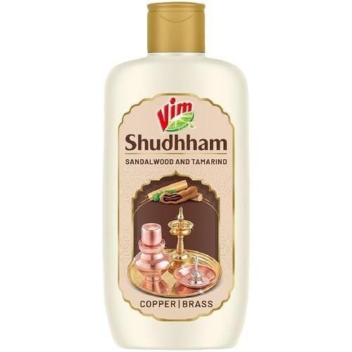 Immerse yourself in the heavenly scent of sandalwood and tamarind with Vim Shudhham, a cleaning liquid crafted from copper and brass that effortlessly eliminates tarnish and restores a brilliant shine. Made with natural ingredients, this gentle yet powerful solution is ideal for polishing utensils, idols, and various metal surfaces. Its distinctive formula not only cleans but also leaves a lasting fragrance, evoking the spirit of sacred ceremonies. Shudhham is a trusted name in Indian homes, providing a convenient method to preserve the brilliance of your beloved metallic items. Embrace the traditional essence of purity and allow Shudhham to enhance your cleaning experience.