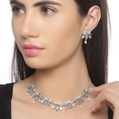 7 reviews for Voylla Amaira Mirror Details Necklace Set for Women and Girls – Fast Shipping to USA & Canada