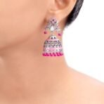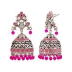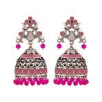 7 reviews for Voylla Brass Silver Oxidised Plating Rangabati Pink Embellishments Jhumka Earrings with Pearl Beads for Women and Girls – Fast Shipping to USA & Canada