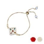 7 reviews for VOYLLA CZ Embellished Gold Toned Bracelet Style Rakhi – Fast Shipping to USA & Canada