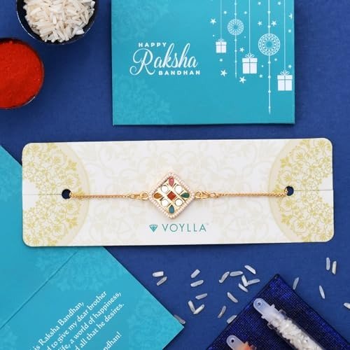 VOYLLA CZ Embellished Gold Toned Bracelet Style Rakhi – Fast Shipping to USA & Canada