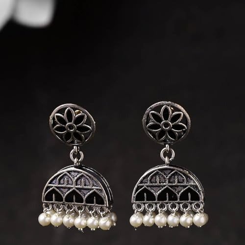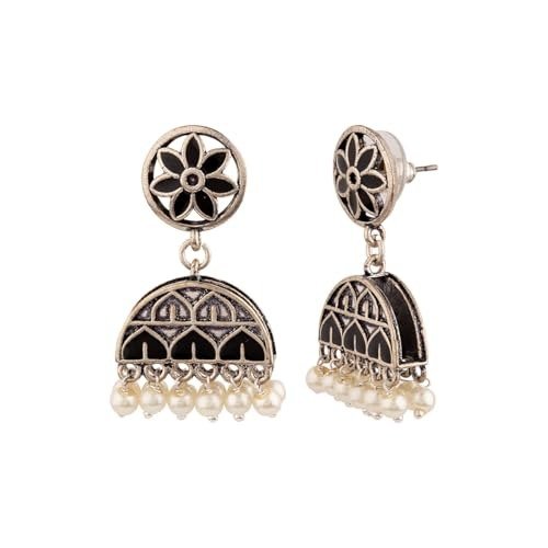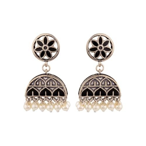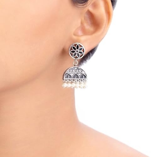 Voylla Oxidised Silver Plating Brass Rangabati Pink Embellishments Jhumkis Earrings for Women – Fast Shipping to USA & Canada