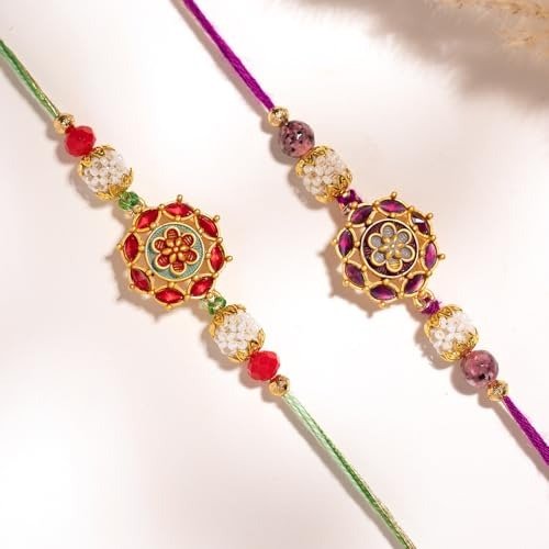 VOYLLA Regal Bloom Designer Rakhi Combo For Brother|Floral Rakhi set of 2|Rakhi gift for brother – Fast Shipping to USA & Canada