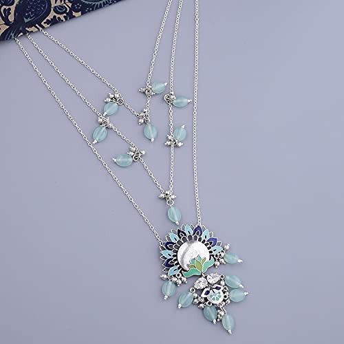 Voylla Silver Brass Bagh E Fiza Blooming Flower Motifs Necklace for Women and Girls – Fast Shipping to USA & Canada
