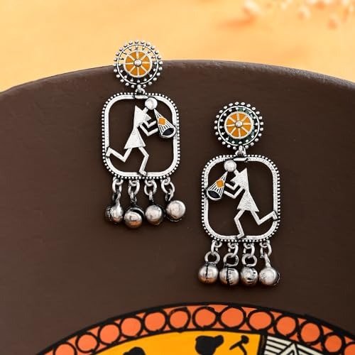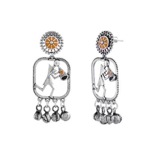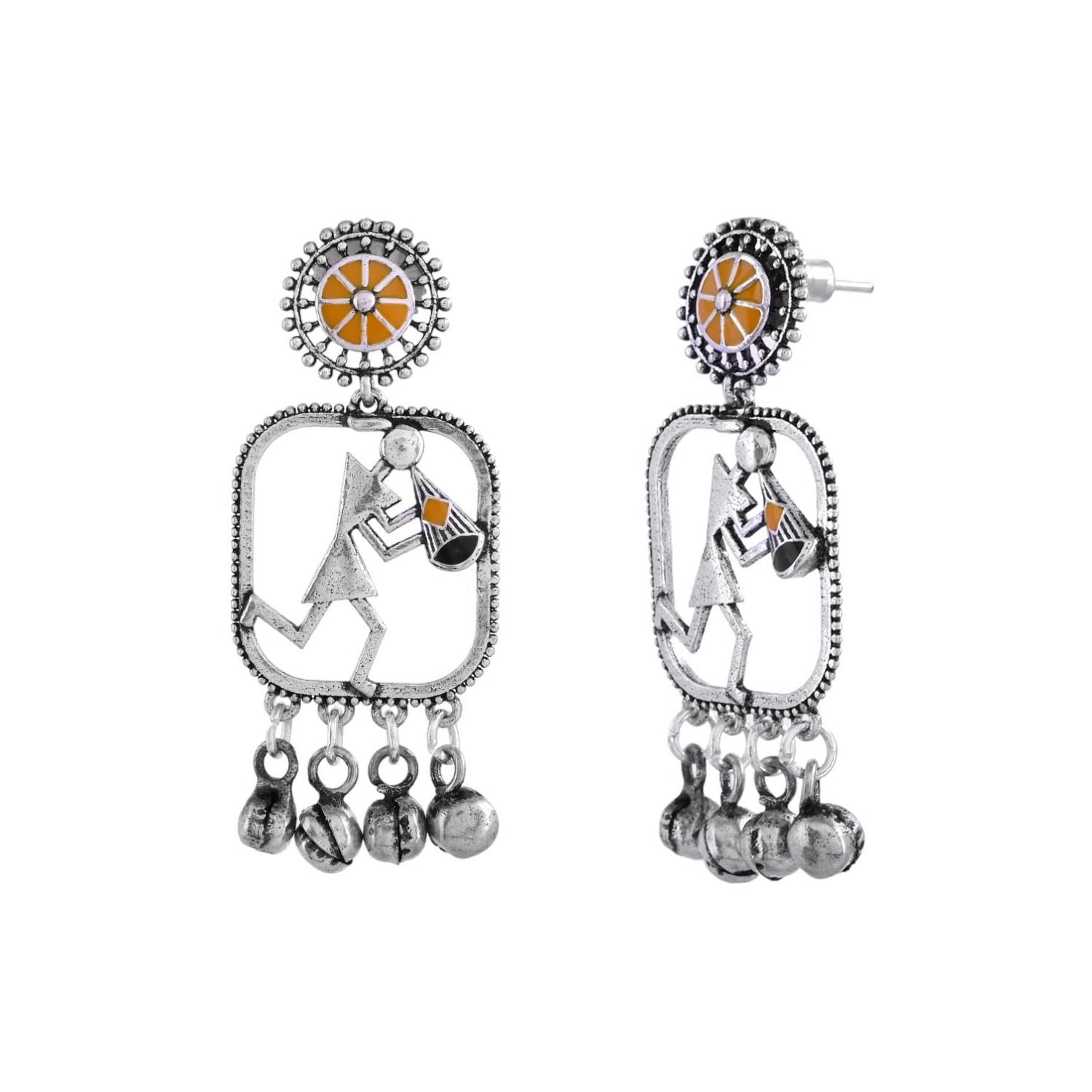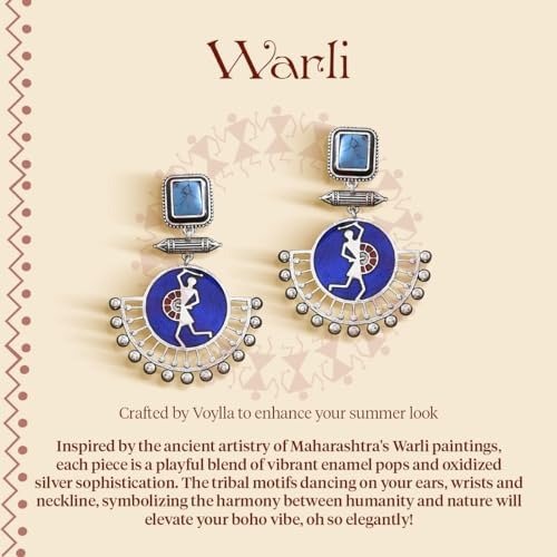 Voylla Warli Raat Ke Dhai Bhaje Koi Shehnai Baje Earrings Danglers Earrings For Women|Enamel|Summer|Gift For Her|Oxidised| – Fast Shipping to USA & Canada