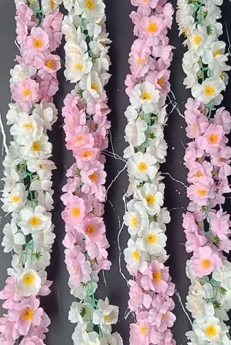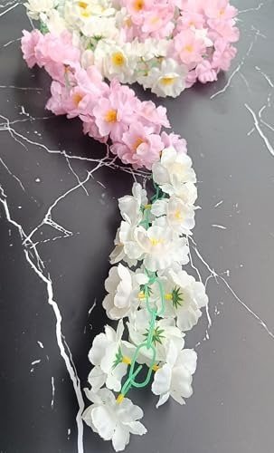 VRB Dec 1 Pcs Artificial Flowers Vine Blossom/Roses Garland Fake (6 feet) Flowers Fabric Roses/Blossom Garland for Wedding Decor Diwali/Ganpati/Garden Wall Valentine (White & Pink Combo Blossom) – Fast Shipping to USA & Canada