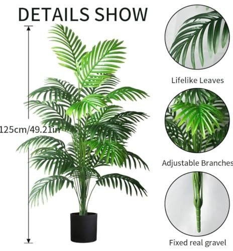 • Includes: Artificial Areca Palm Plants featuring 12 leaves per stem, available with or without a plastic pot. The leaves, stem, and pot are provided separately; simply attach the leaves to the stem, then insert the stem into the pot. To secure the plant, use artificial soil or decorative pebbles and stones (not included) to keep the stem stable within the pot.
