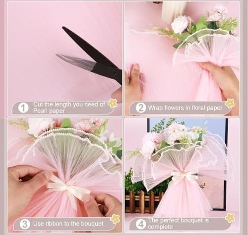 - Made from delicate netting, this elegant mesh roll is adorned with a beautiful pearl-edged finish-ideal for adding a luxurious and refined touch to bouquet arrangements, gift baskets, wedding decorations, and a variety of DIY crafts.