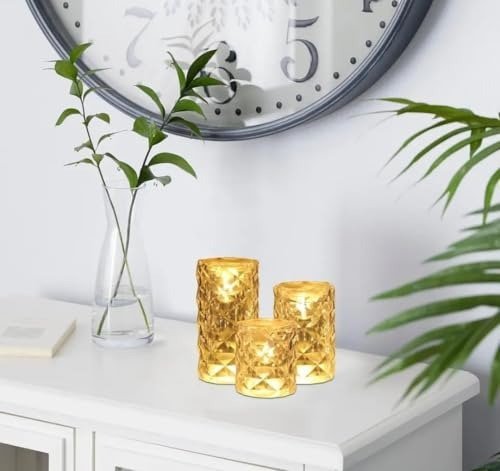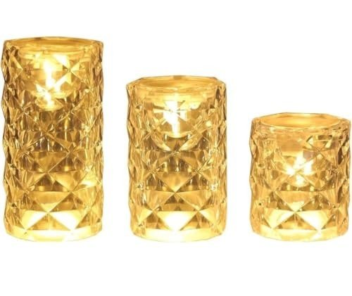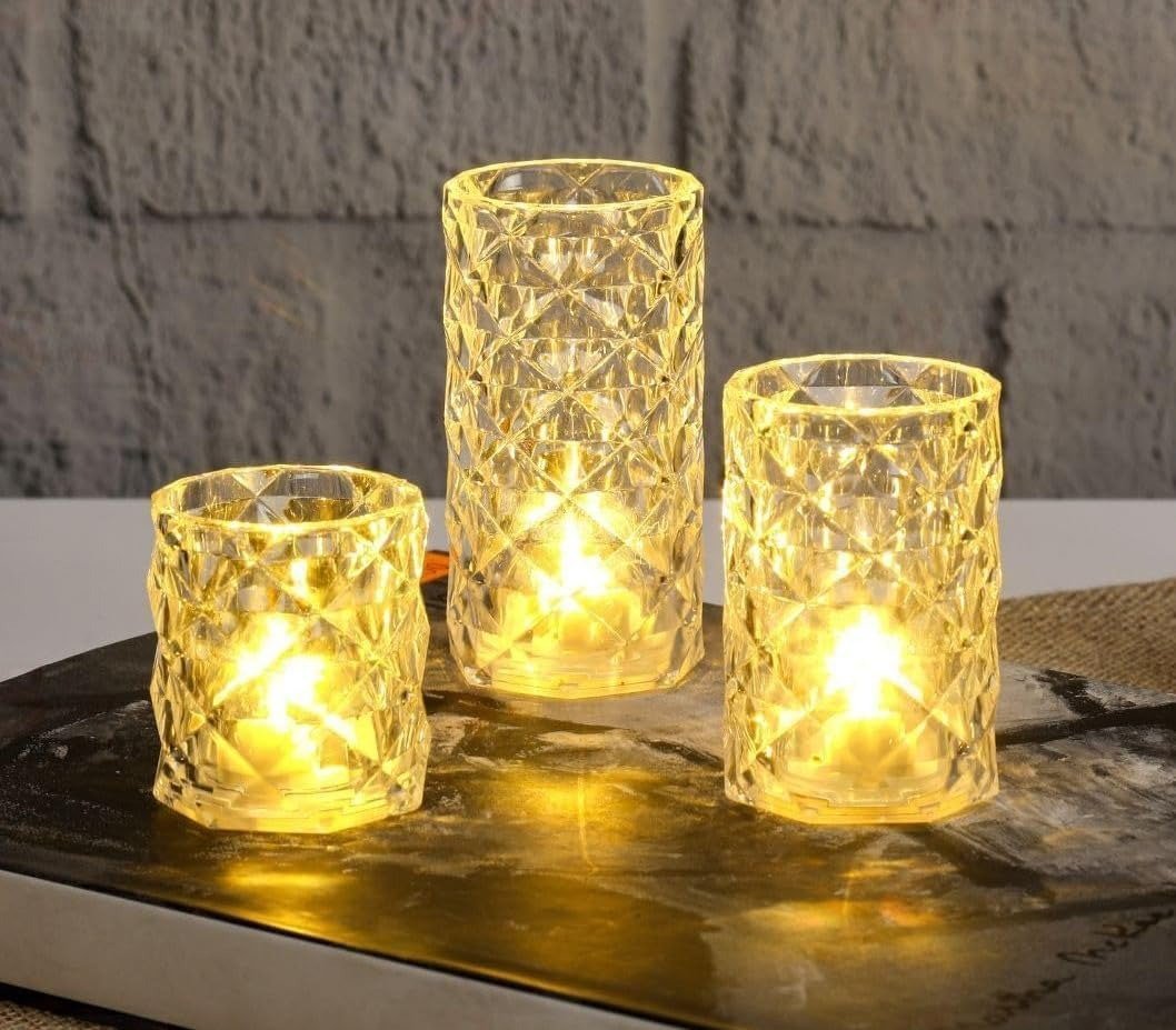 VRB Dec 3Pcs Pillar Candles Acrylic Flameless & Smokeless Decorative Candles Led Tea Light Candle Perfect For Gifting, Home,Diwali, Christmas,Decorative Candle,Birthday (Model – 3),Transparent – Fast Shipping to USA & Canada