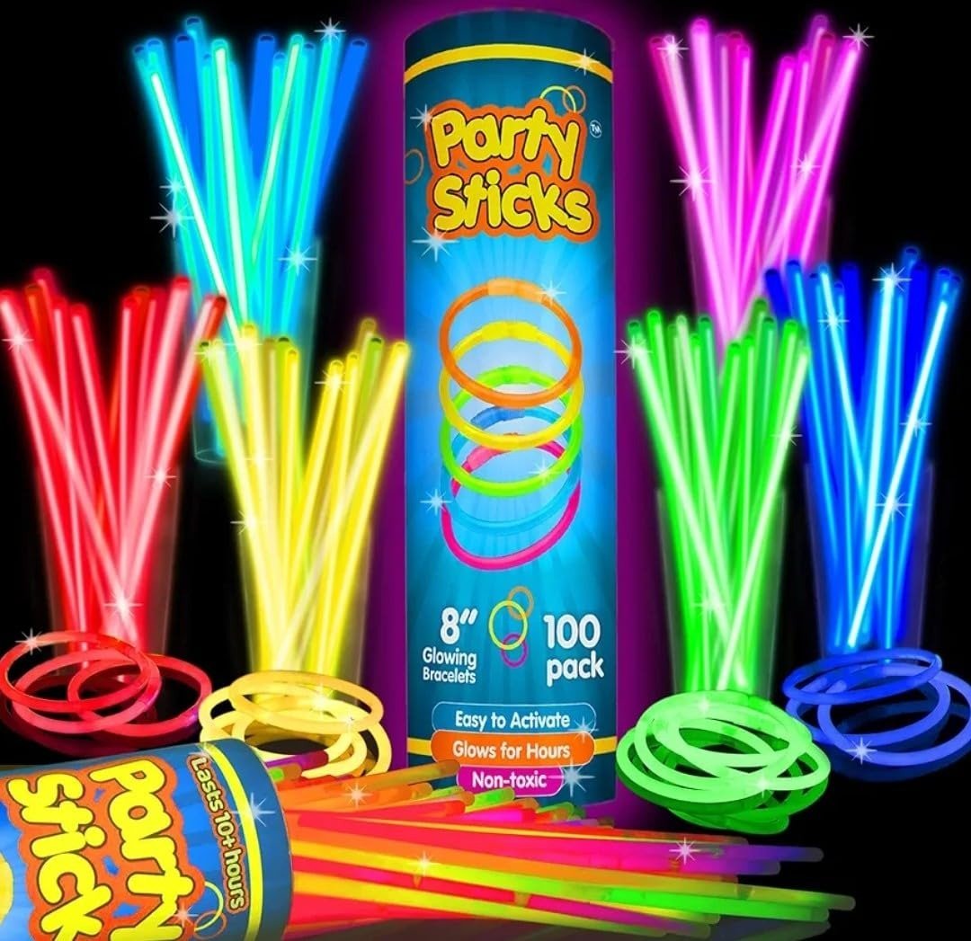 MULTICOLORED LUMINOUS STICKS: Experience ultra-bright glowing sticks with reliable connectors that securely hold for hours, allowing you to easily craft bracelets, necklaces, headbands, wristbands, glasses, and more. These glow-in-the-dark radium sticks are perfect for any occasion-whether it?s a birthday celebration for adults, return gifts for children, anniversary decorations, or both small and large events. They make fantastic neon party accessories, can be used as fun games with kids, and are ideal for glow-in-the-dark party supplies.