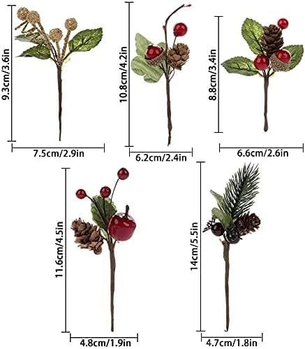 VRB Dec 6pcs Christmas Pine Berries Tree Branches Stems Artificial Christmas Picks for Christmas Tree Ornaments, DIY Xmas Wreath, Crafts, Holiday and Home Decor (6 pcs – Pinecone Pine Branches) – Fast Shipping to USA & Canada