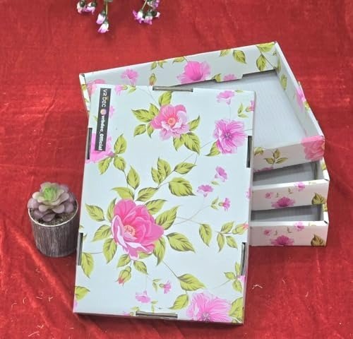 SUSTAINABLE CHOICE: Crafted from renewable resources and fully recyclable, these paper gift boxes offer an eco-conscious alternative. Our collapsible decorative box suits numerous occasions-weddings, birthdays, Diwali, and other celebrations. Ideal for use as a hamper component, wedding decor , return gift organizer, Pooja tray, marriage present box, chocolate packaging, or for storing assorted gifts.