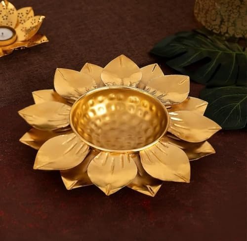 VRB Dec Iron Tm Decorative Urli Bowl For Room | Diwali Decoration Items For Home | Diwali Decoration Items For Home Decor Living Room (12 Inch) (Pack Of 1 Pcs) (Urli With Lotus Leaf Design), Gold – Fast Shipping to USA & Canada