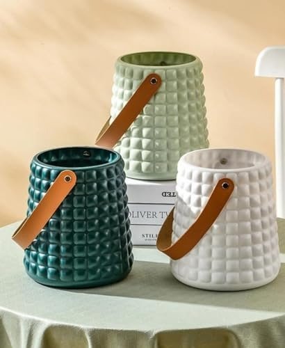 Material: Made from plastic, designed to resemble ceramic - Distinctive Aesthetic: Featuring a minimalist yet sophisticated design, this flower vase brings a refreshing and tidy ambiance to your living space. Crafted from durable fiber material, the compact vase resists breaking and toppling, ensuring stability and longevity.
