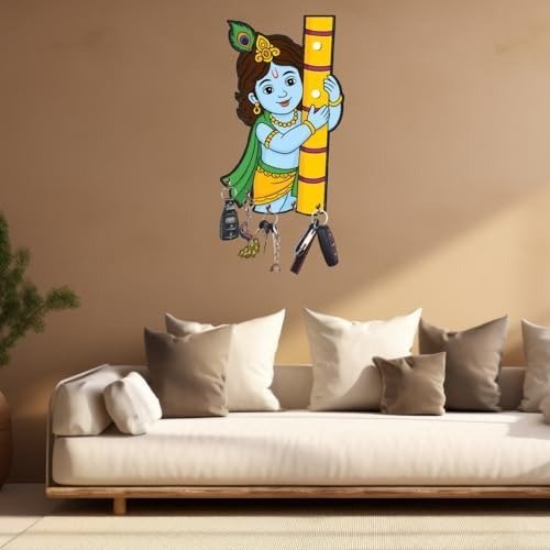- Ideal for Home Decor, Krishna-Themed Key Holder, Key Organizer with Krishna Print Design