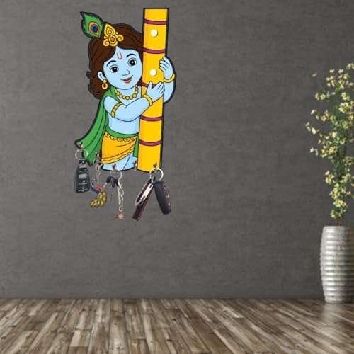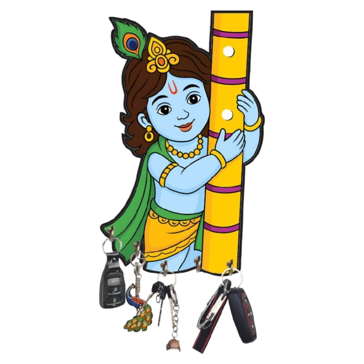 Shade: Multicolored - Package Includes: 1 Webelkart Adorable Krishna Wooden Key Holder; Material: Wooden Krishna Key Organizer