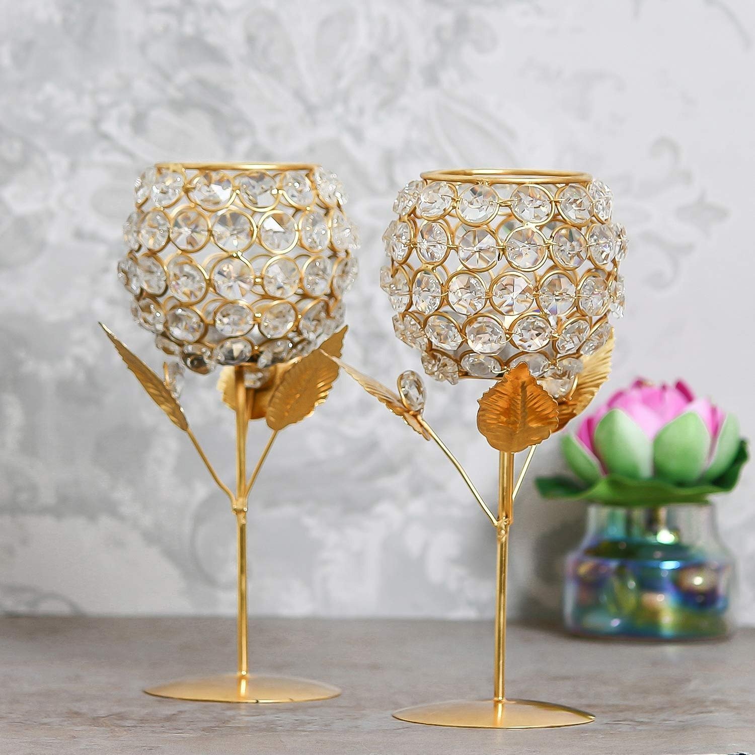 WebelKart New Premium Crystal Rose Brass Candle Holder for Decoration -Candle Stand for Diwali – Diwali Candle Holder (Model-1) – Fast Shipping to USA & Canada