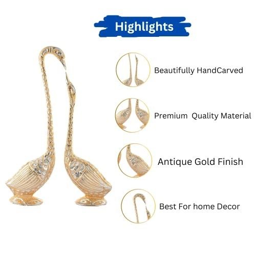 WebelKart Pair of Kissing Duck, Swan Showpiece For Home Decor – 29 cm (Aluminium, Golden ) – Fast Shipping to USA & Canada