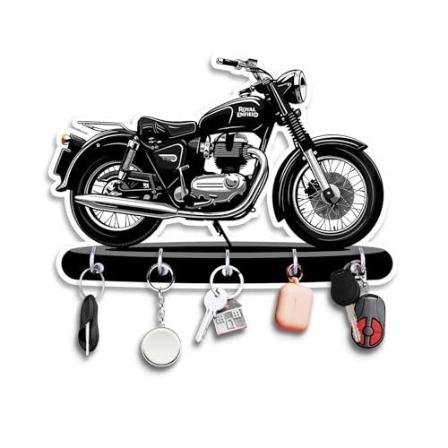 - Ideal for Home Decor and Car Interiors, Wooden Key Holder in the Shape of a Royal Enfield Bullet Bike