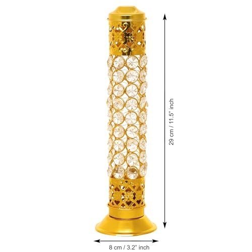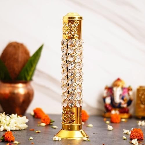 Webelkart Traditional Brass Crystal Incense Holder| Agarbatti Stand with Ash Catcher Incense Holder Stick Holder for Pooja, Decor Burner for Home Office Decoration (11.5″ Inches) – Fast Shipping to USA & Canada