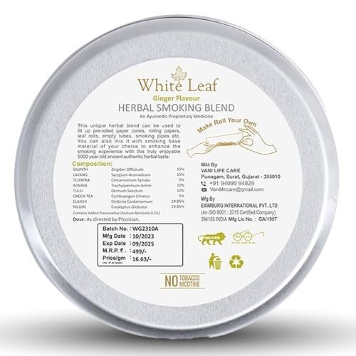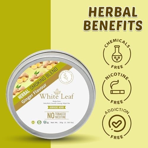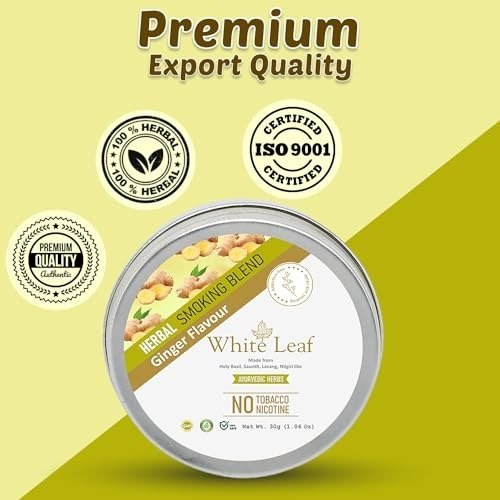 White Leaf Tobacco & Nicotine Free Smoking Mixture With 100% Ginger Flavour Herbal Smoking Blend (makes 40 rolls) Tobacco Alternatives Herbal Smoking Mix 1 Pack 30gm x Pack of 2 – Fast Shipping to USA & Canada