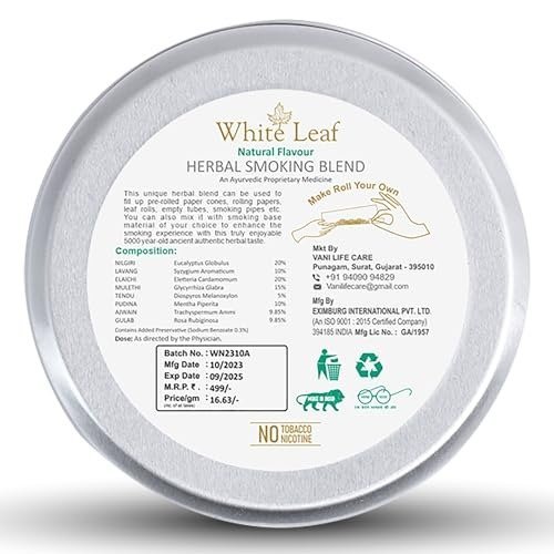 White Leaf Tobacco & Nicotine Free Smoking Mixture With 100% Natural Flavour Herbal Smoking Blend (makes 40 rolls) Tobacco Alternatives Herbal Smoking Mix 1 Pack 30gm x Pack of 2 – Fast Shipping to USA & Canada