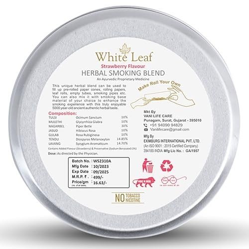 White Leaf Tobacco & Nicotine Free Smoking Mixture With 100% Strawberry Flavour Herbal Smoking Blend (makes 40 rolls) Tobacco Alternatives Herbal Smoking Mix 1 Pack 30gm x Pack of 2 – Fast Shipping to USA & Canada