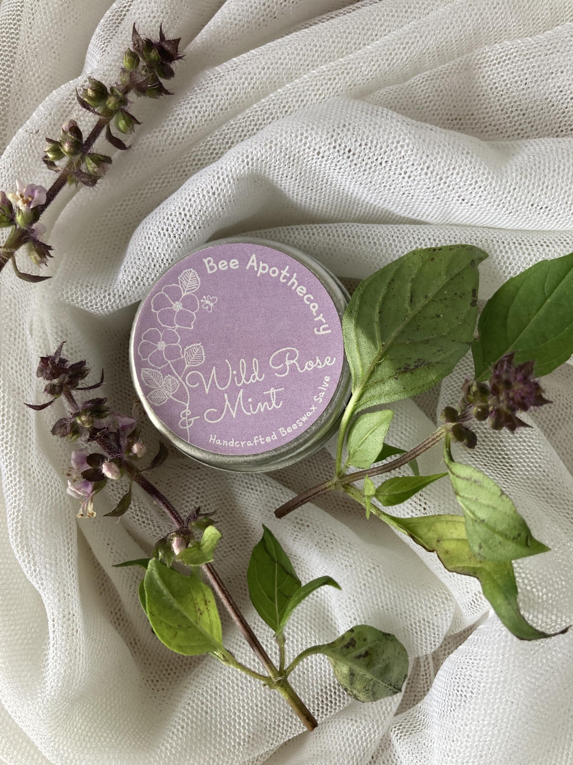 Wild Rose Mint Beeswax Salve | Herbal Skin Repair Balm | Shea + Essential Oils | Floral Scent | Travel Tin | 15g – Fast Shipping to USA & Canada
