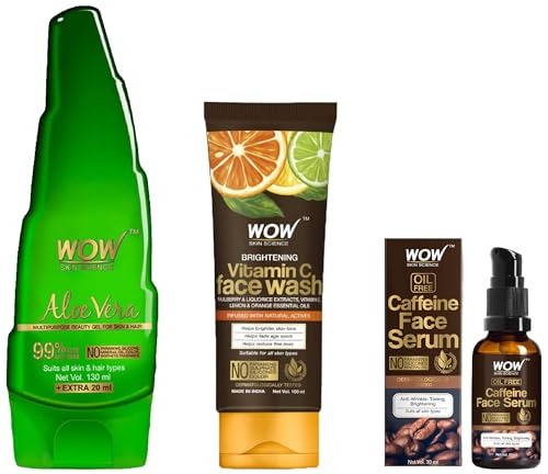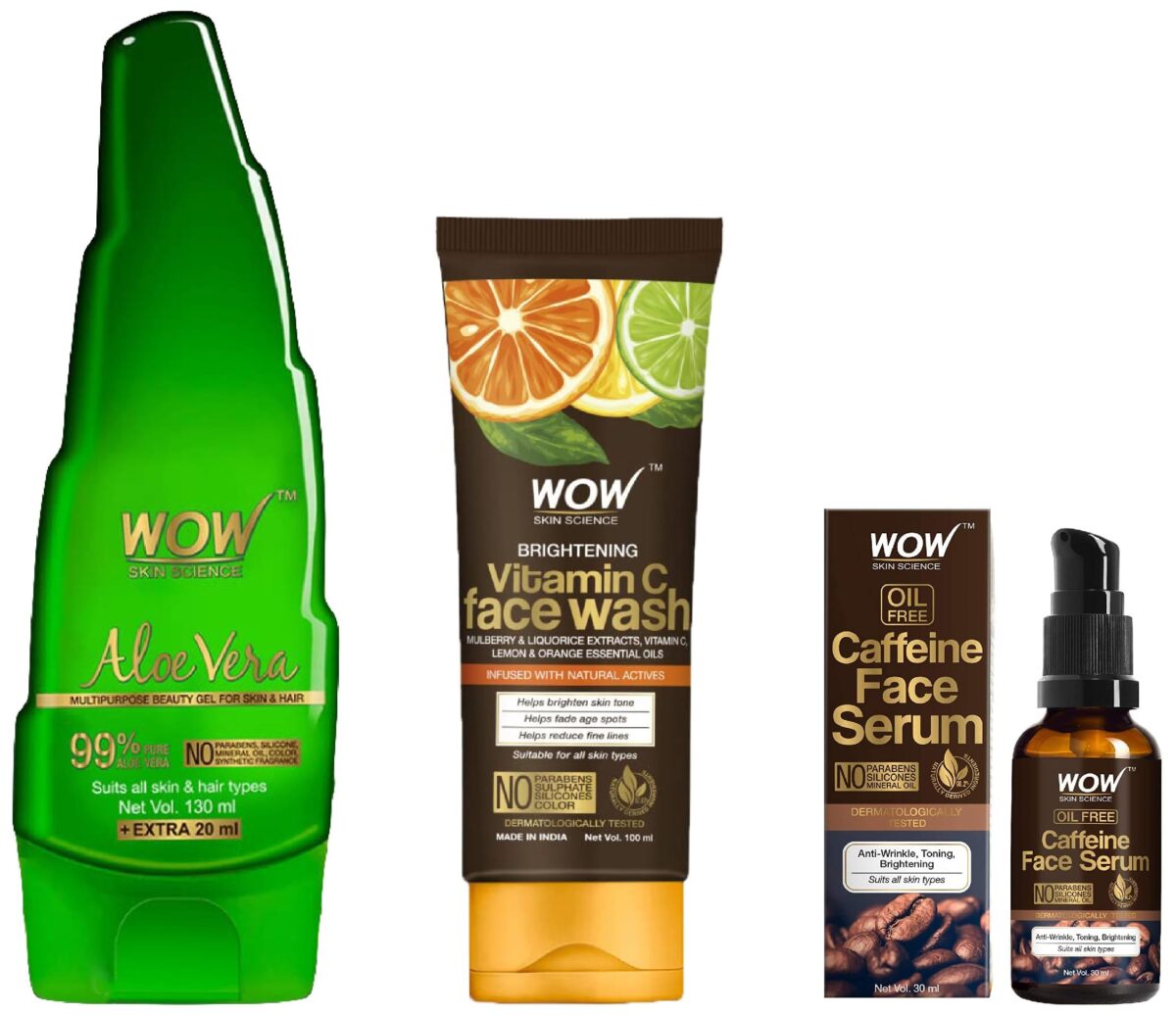 WOW Skin Science Caffeine Face Serum – Quick Absorbing – Oil Free – Anti-Aging& Science Brightening Vitamin C Face Wash&Science 99% Pure Aloe Vera Gel For Face,Skin&Hair – 150Ml – Fast Shipping to USA & Canada