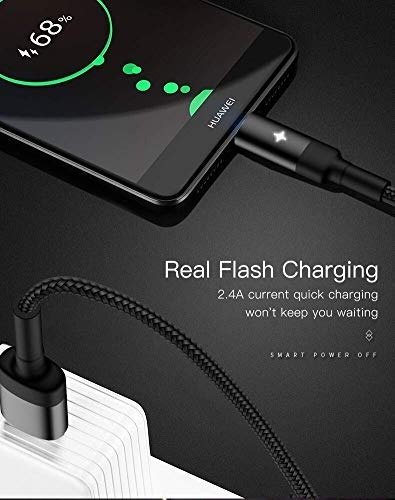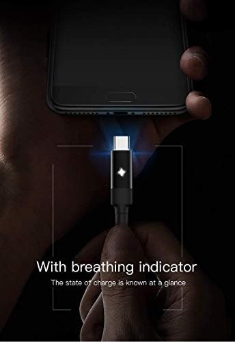 Xtore 2.4A Fast charging Type C Cable with smart Auto Disconnect | Compatible with all Android Phone with Type C connector | LED Indicator | Data and Charge at the same time – (120cm, Black) – Fast Shipping to USA & Canada