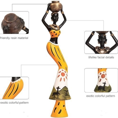 - This distinctively handcrafted and hand-painted resin figurine of a black African tribal woman serves as a striking addition to any home or office Decor.