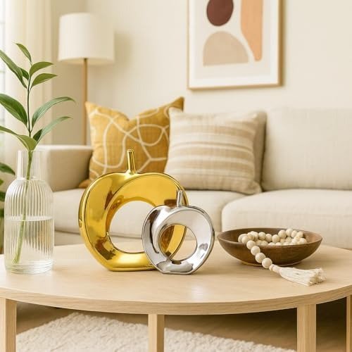Xtore Beautiful Golden and Silver Hollow Apple Ornament Ceramic Home Decor Showpiece (Pack of 2,Golden & Silver) – Fast Shipping to USA & Canada