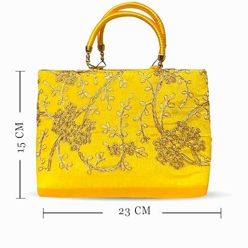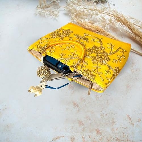 Xtore Beautiful Handmade Purse with Golden Work for Women (Pack of 1, Yellow) – Fast Shipping to USA & Canada