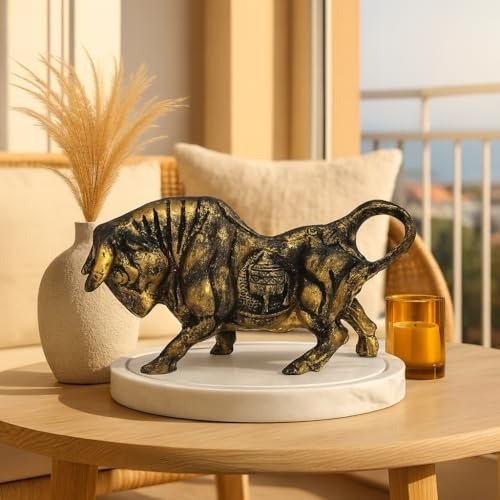 Xtore Brass Finish Bull Resin Statue for Home Decor (Pack of 1, Golden and Black) – Fast Shipping to USA & Canada
