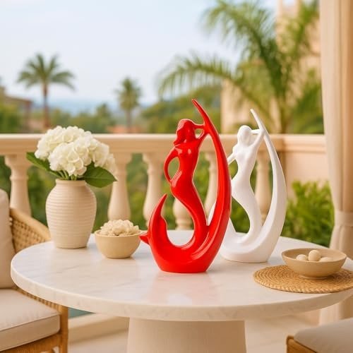Xtore Ceramic Home Decor Creative Glossy Mermaid Shape Figurine (Pack of 2,Red and White) – Fast Shipping to USA & Canada