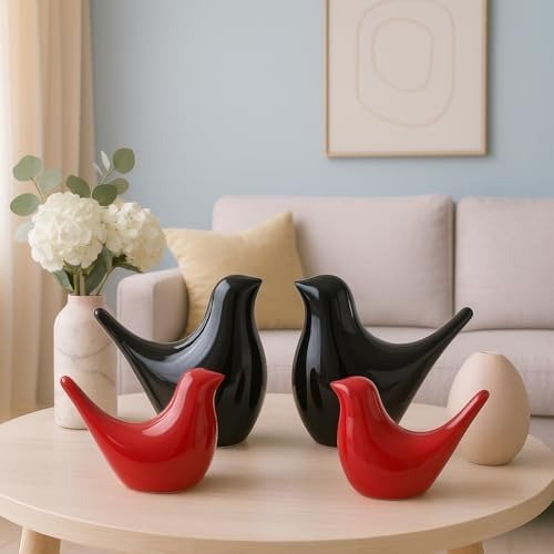 Xtore Creative Black and Red Glossy Ceramic Birds Figurines Home Decorations Accessories Party (Pack of 4, Red & Black) – Fast Shipping to USA & Canada