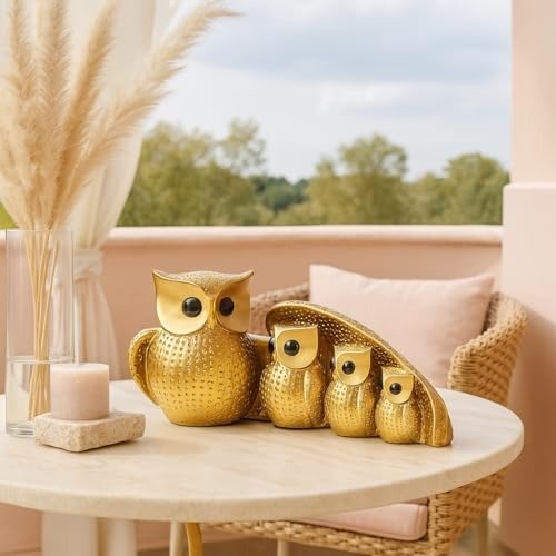 Xtore Golden Owl Family (Mother & Child) for Home Decor (Pack of 1, Golden) – Fast Shipping to USA & Canada