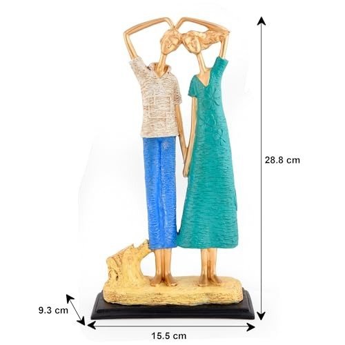 This elegant figurine of a dancing couple masterfully embodies the fluidity and grace of a waltzing pair. Expertly sculpted from premium resin, it showcases a harmonious blend of gold, blue, and teal hues that accentuate its lively posture and creative form. Perfect for infusing living rooms, dining areas, or entryways with a sense of romance and artistic flair, this sculpture functions as both a striking decorative piece and a meaningful gift for memorable occasions. Its intricate detailing and vivid colors make it an ideal choice for anyone wishing to celebrate love and the beauty of art in their home.