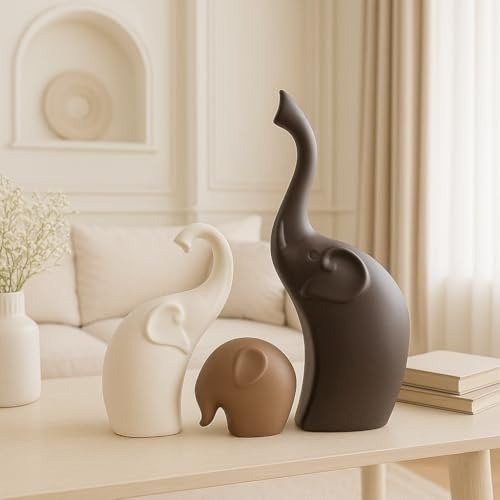 Xtore Home DECOR Elephant Family Matte Finish Ceramic Figures – (Set of 3 Piece, Matte Brown) – Fast Shipping to USA & Canada