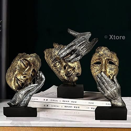 Xtore Human Face Decorative Statues | Handcrafted and Hand Painted (Pack of 3, Gold & Silver) – Fast Shipping to USA & Canada