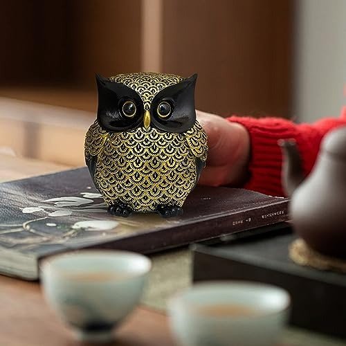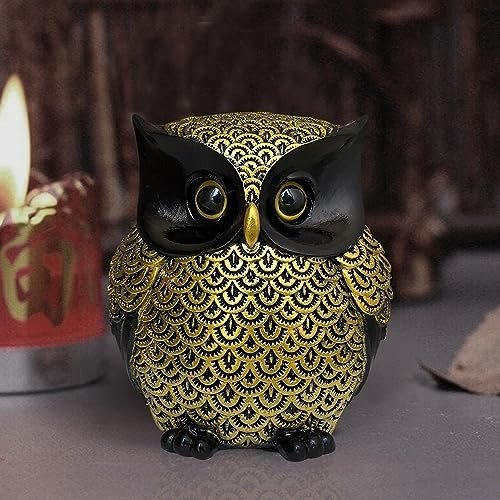Xtore Modern Classy Lucky Owl Resin Art Figure Showpiece (Pack of 1, Black and Golden) – Fast Shipping to USA & Canada