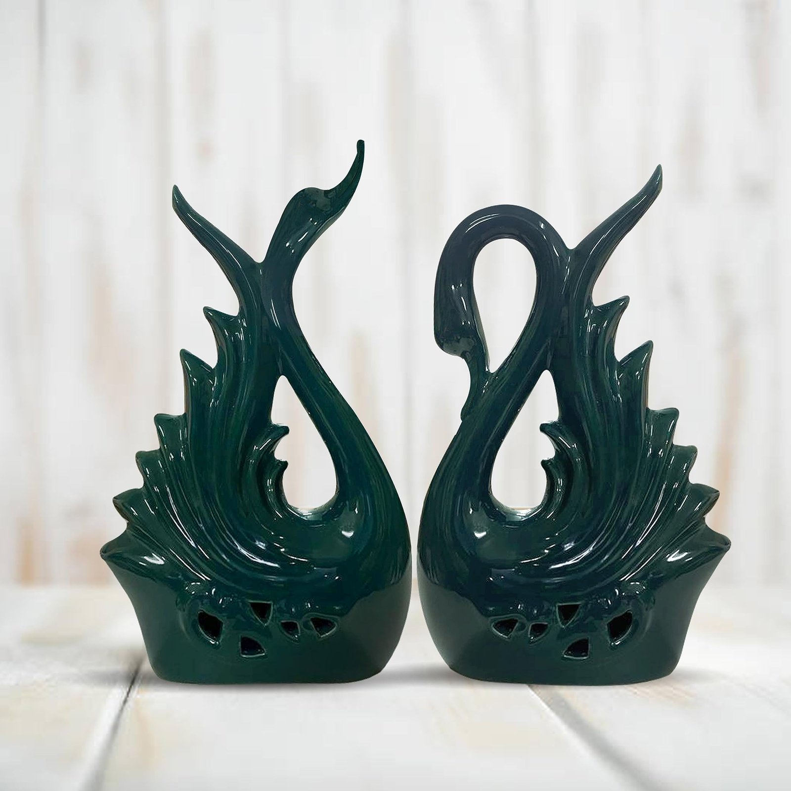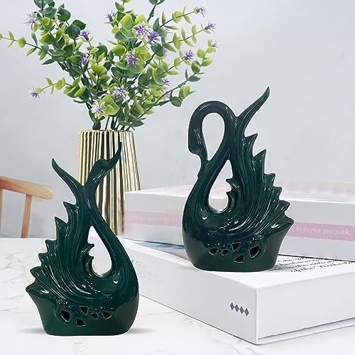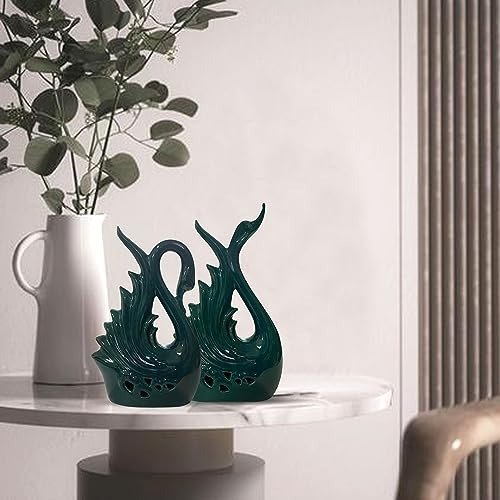 Xtore Modern Elite Swan Pair Ceramic Art Figurine | Beautiful Home Decor (Pack of 2, Green) – Fast Shipping to USA & Canada