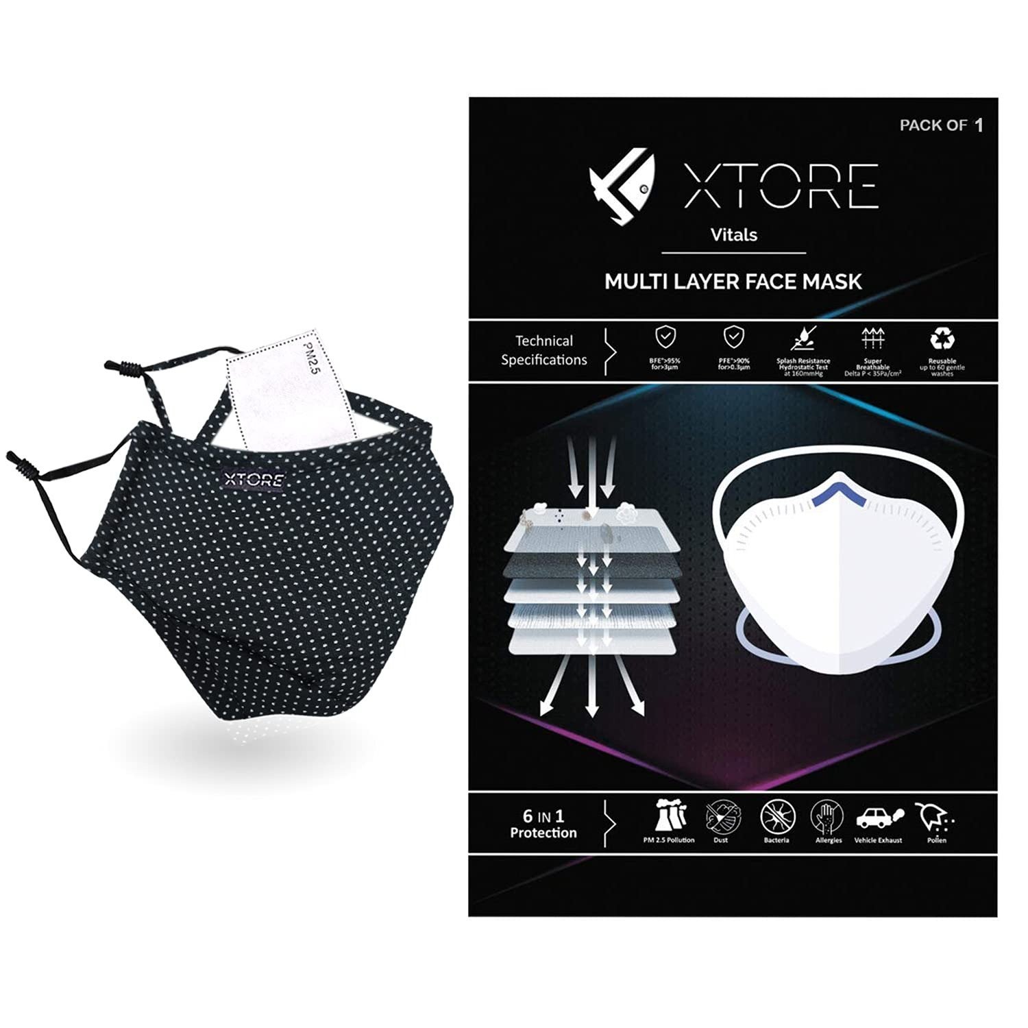 Xtore N-95 FDA CE Certified Antipollution Cotton mask | Reusable | Washable | Pack of 1 (Polka Dot Royal Black) – Fast Shipping to USA & Canada