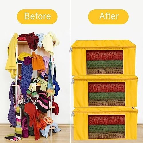 XTORE PRIM E and Finest SAREE COVER with Zipper Closure & Transparent Window (Pack of 3, YELLOW) – Fast Shipping to USA & Canada