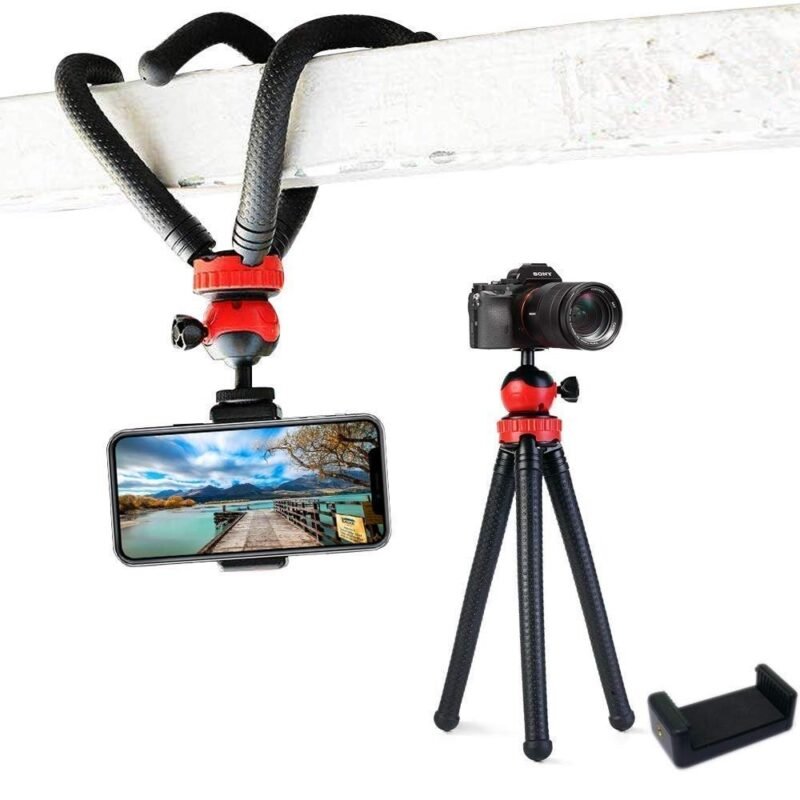 Xtore Flexi Tripod with 360? Rotation for All DSLR and Mobile Phone with Free Phone Holder Clip – (Pack of 1, Black and Red) – Fast Shipping to USA & Canada